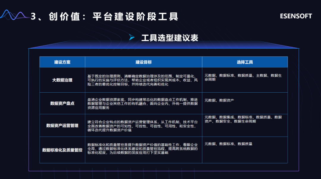 DCMM评估成为重要助力工具集;在体系建设阶段,数据治理绩效考评和成果可视化必不可少;在平台建设建设阶段,综合性