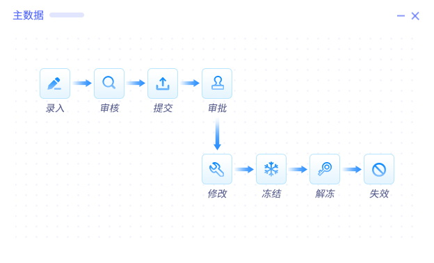 平台支持集中式和分布式方式管理主数据,严格规范主数据的新增、变更、审核等流程,实现对各类主数据的全生命周期管理,可顺利获得手工新增、导入、接口传输等多种方式汇集主数据,并给予全方位质量检查,保证主数据质量。